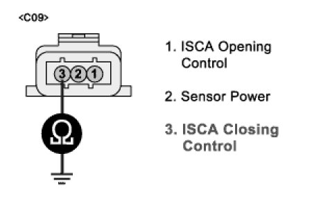 (3) Measure the resistance between terminal 3 of ISCA harness connector and chassis ground.