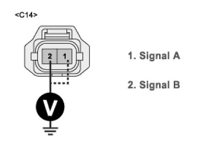 5. Measure the voltage between terminal 2 of Knock sensor harness connector and chassis ground.