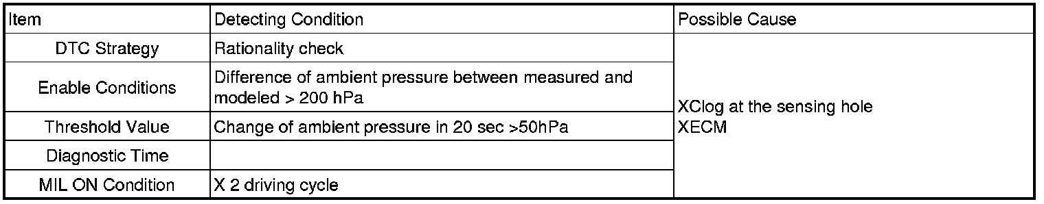 If the change of ambient pressure value is over 50 ha during 20 sec or more, PUCK sets DTC P2226.