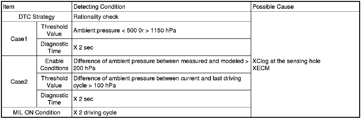 If the output of ambient pressure sensor is shown abnormal value (refer to DTC Detecting Condition), PUCK sets DTC P2227.