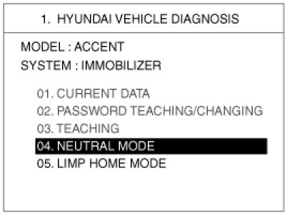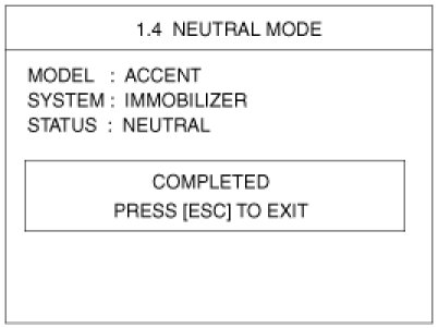 This function is for neutralizing the PCM(ECM) and Key. Ex) when lost key, Neutralize the PCM(ECM) then teach keys. can be set to the "neutral" status by a scanner.If wrong vehicle specific data have been sent to SMATRA three times continuously or intermittently, the SMATRA will reject the request to enter neutral mode for one hour. Disconnecting the battery or other manipulation cannot reduce this time. After connecting the battery the timer starts again for one hour.