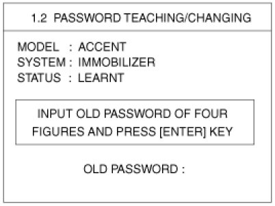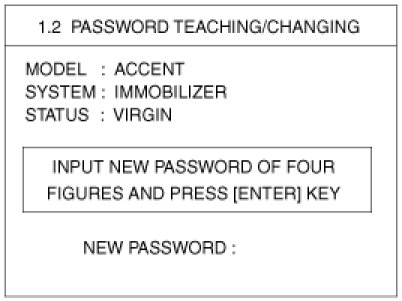 The teaching is started by ignition on, with a valid key (learnt key) and sending the user password by tester. After successful teaching, the status of the user password changes from "virgin" to "learnt"