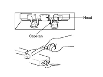2. To clean the tape head and capstan, use a cotton swab dipped in ordinary rubbing an alcohol. Wipe the head and capstan.