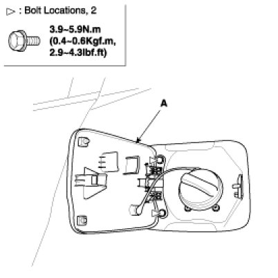 Loosen the bolts, then remove the fuel filler door (A).