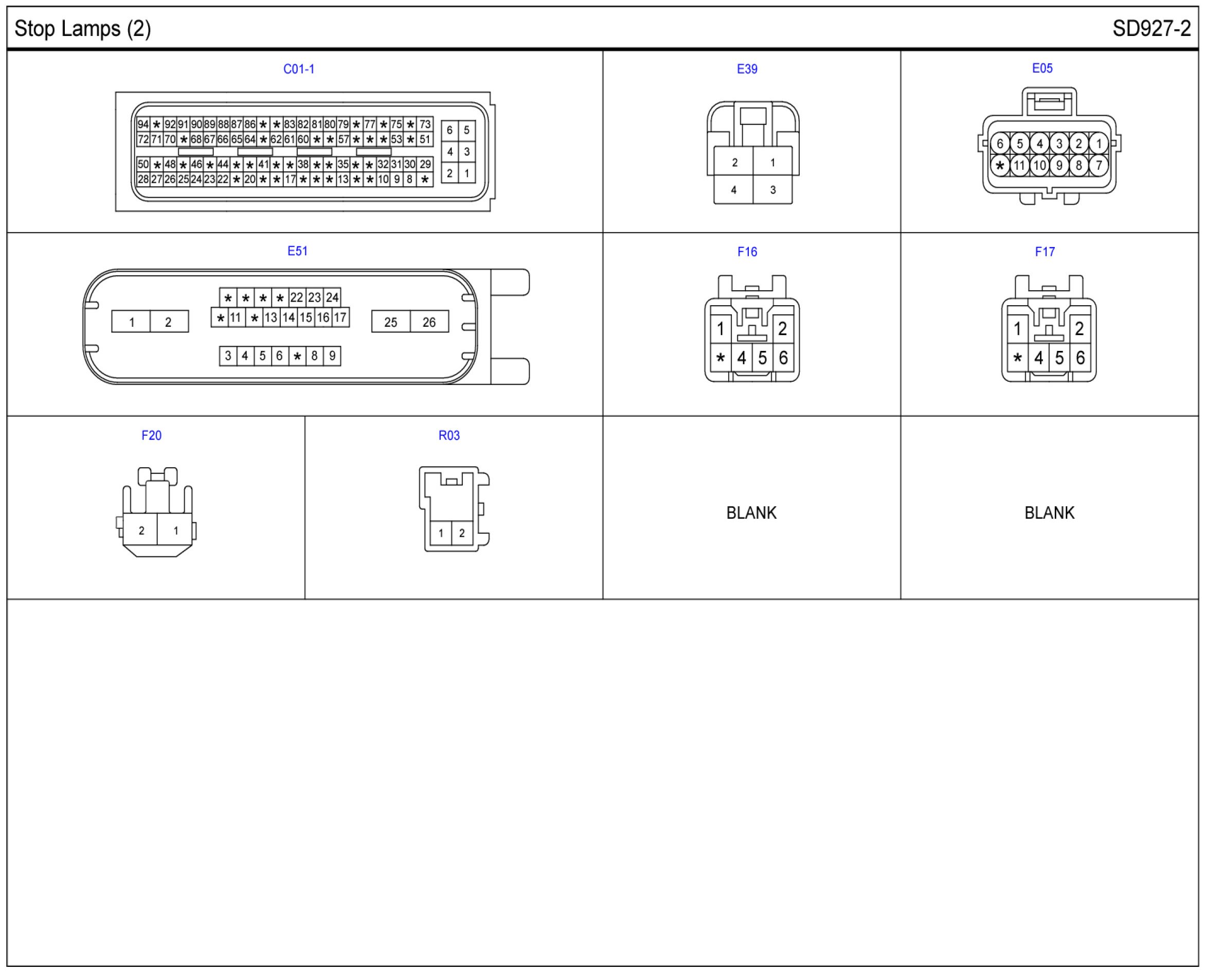 Stop Lamps Connector Pin Outs: