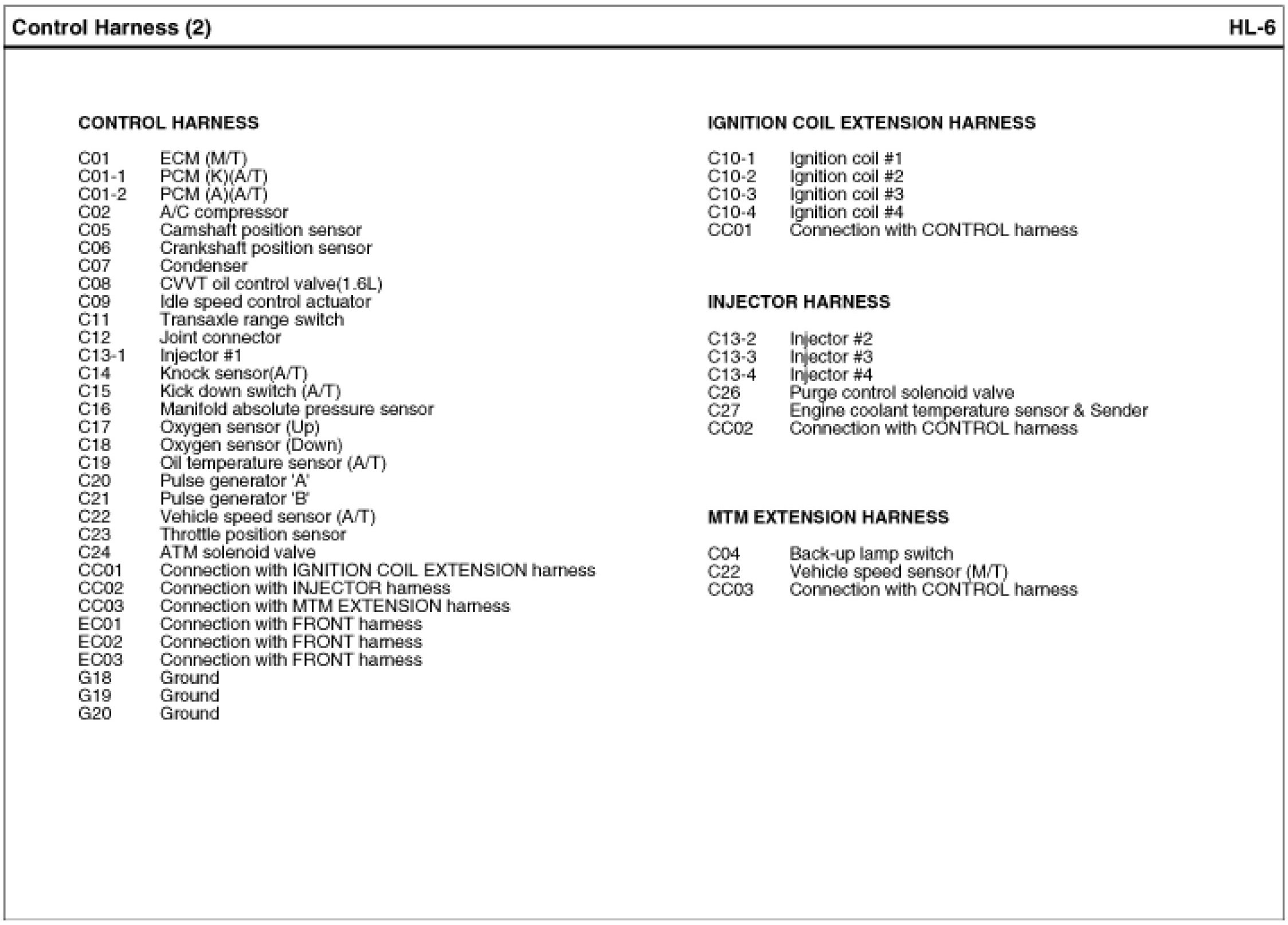Control Harness Index: