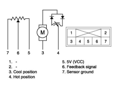 3. Verify that the temperature control actuator operates to the hot position when connecting 12V to the terminal 3 and grounding terminal 4.