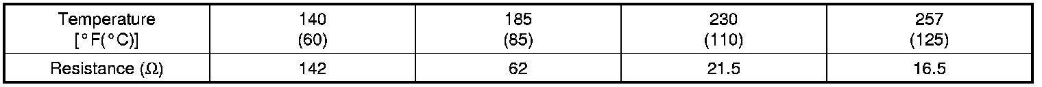 2. If the resistance value is not as shown in the table, replace the temperature sender.