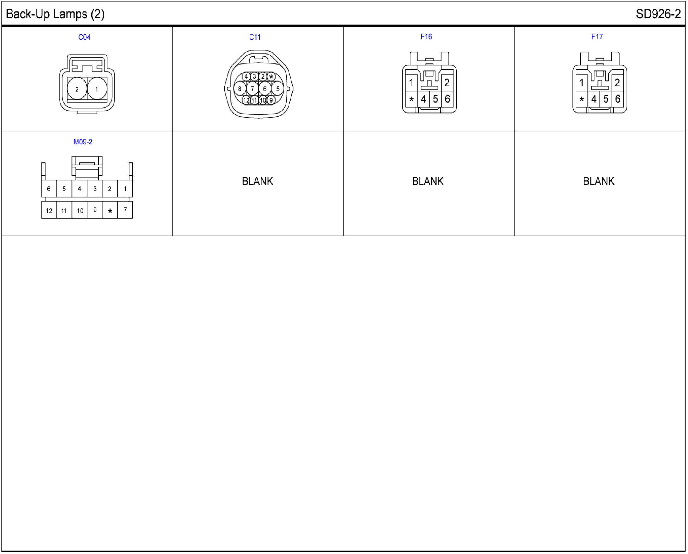 Back-Up Lamps Connector Pin Outs: