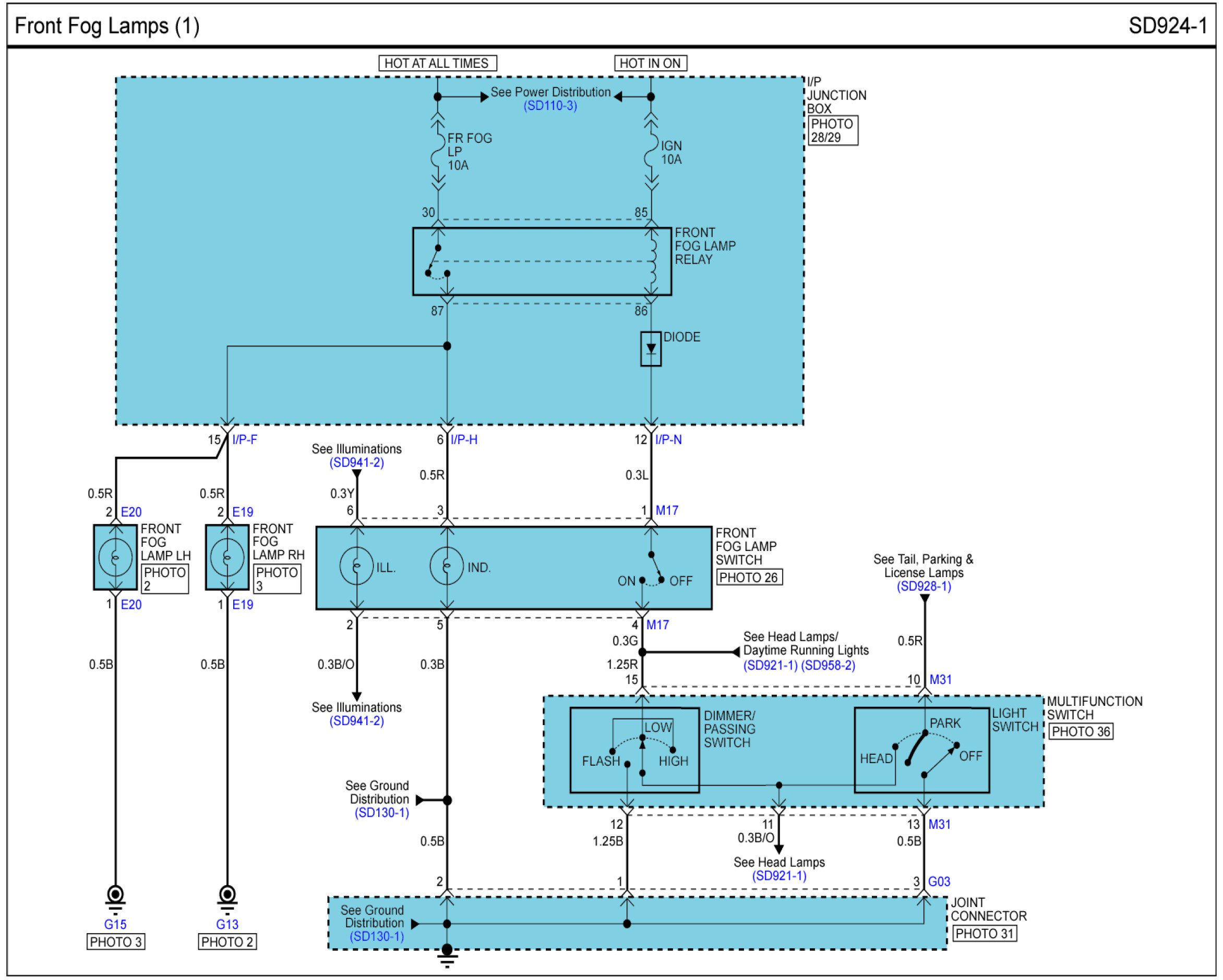 Front Fog Lamps Connector Pin Outs: