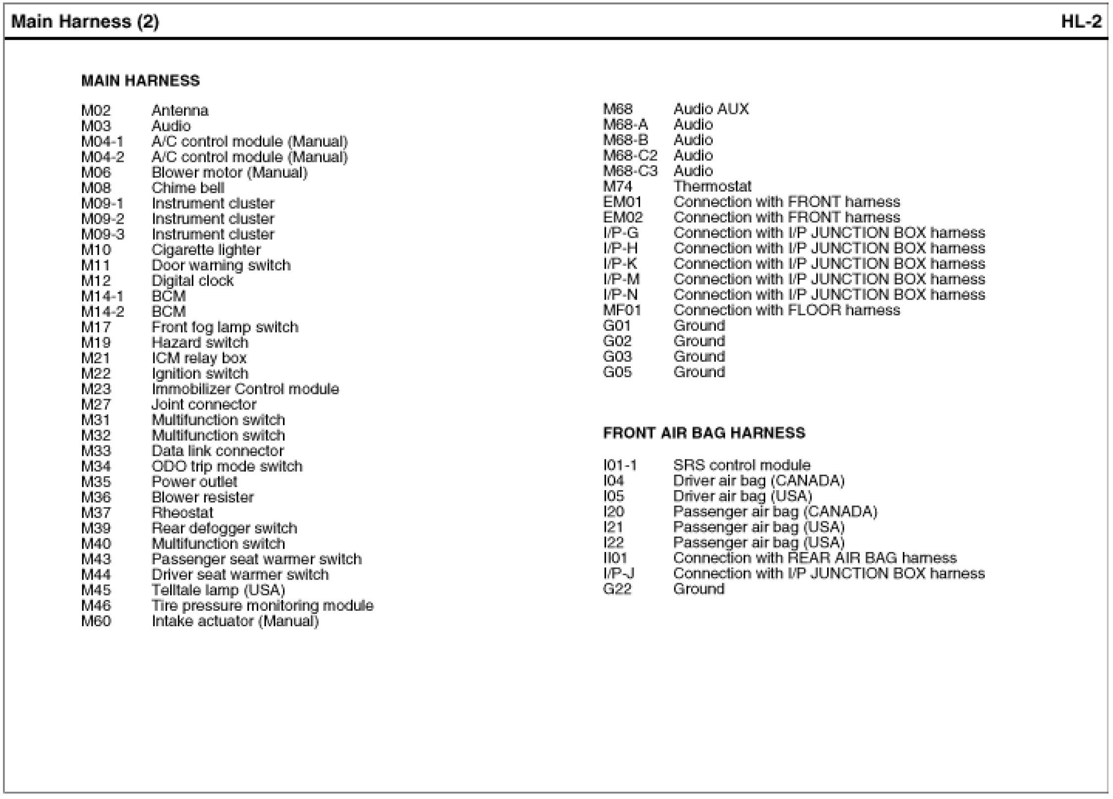 Main Harness Index: