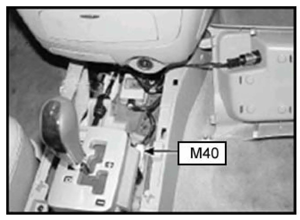 b. For 2006-Sonata: Remove the center console cover and check for contamination on the M40 connector to the sports mode switch. If so, clean and repair the connector as necessary. Go to step c below.