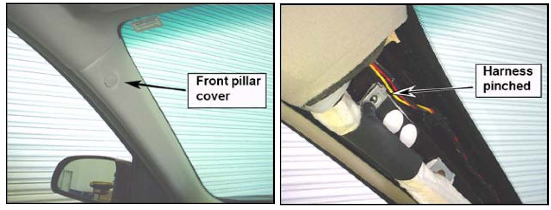 c. For 2006-07 Sonata: Remove the front pillar cover and verify the harness is properly routed near the clip. Repair the harness as necessary. Go to Step 4.
