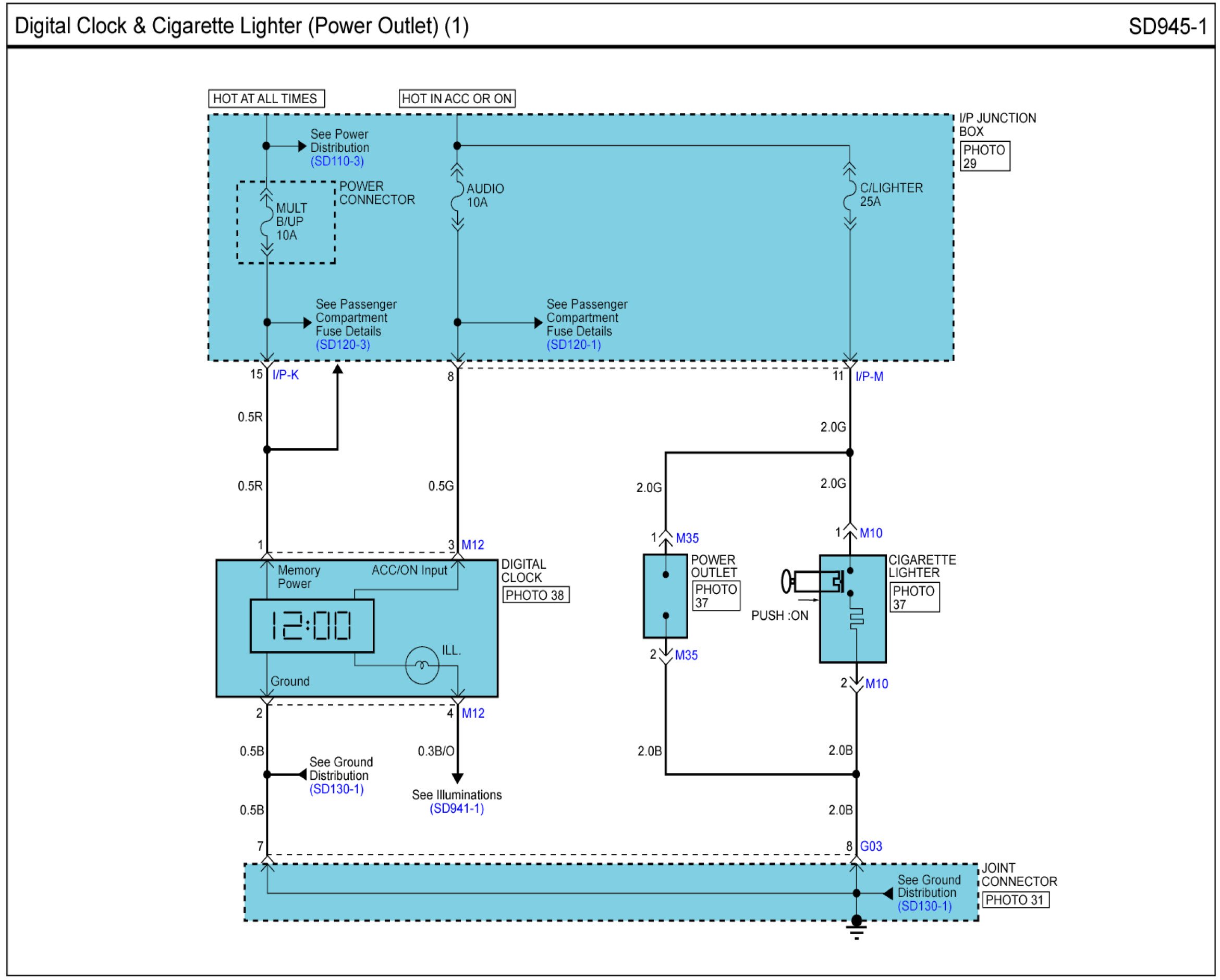Digital Clock & Cigarette Lighter (Power Outlet) Connector Pin Outs: