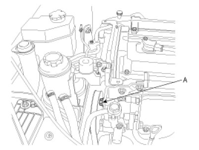 4. Loosen the power steering pump mounting bolt and nut (A), and then remove the power steering pump assembly from the pump bracket.