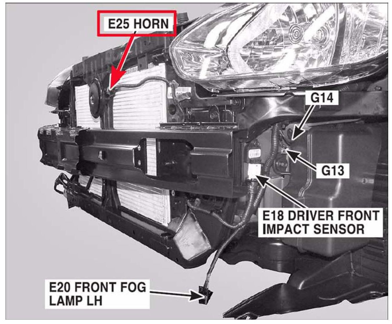 Beginning with January 2, 2009 production vehicles, the theft alarm horn has been integrated with the vehicle horn located at the rear side of the radiator grille. The number of horns has been changed from 2 to 1.