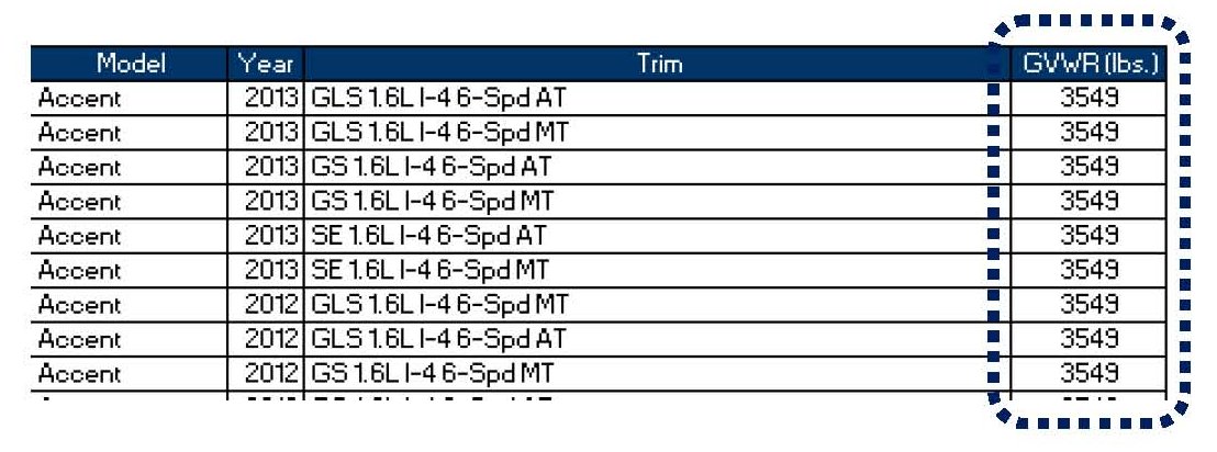 1. To determine if a "Load Carrying Capacity Reduced" label is required go to the following website: HyundaiTechInfo.com.