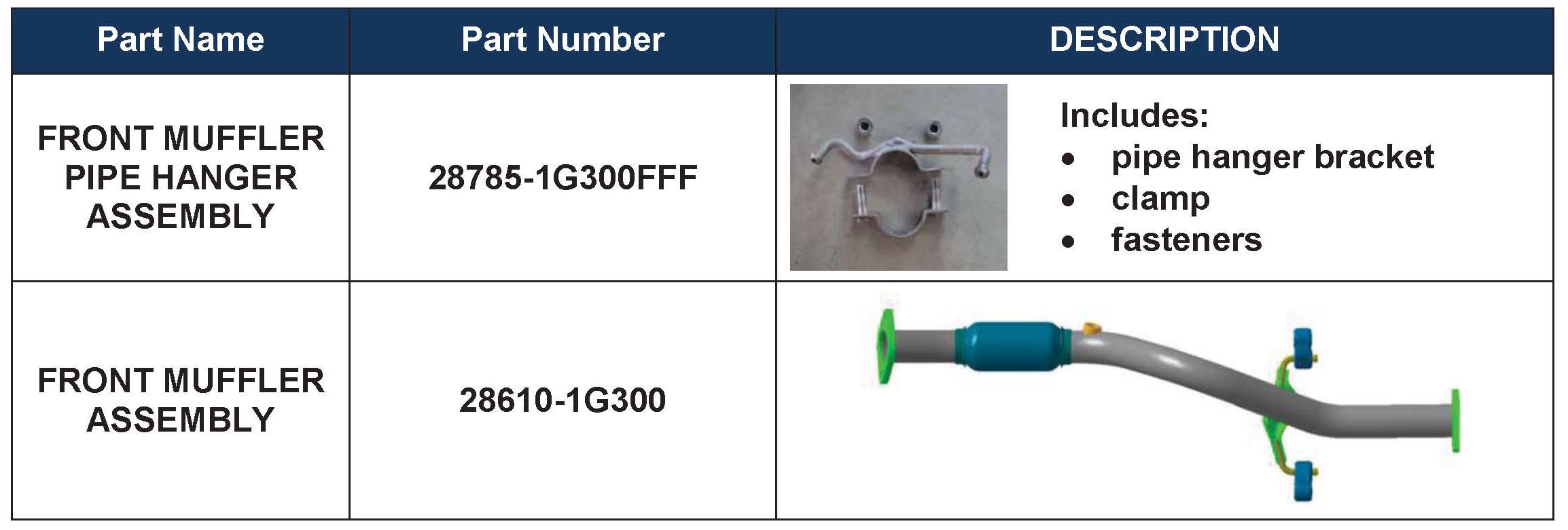 Some 2008-2011 Accent vehicles may exhibit a rattle noise condition from underneath the vehicle near the front muffler pipe assembly. This bulletin provides a procedure to replace either the Front Muffler Pipe Hanger Assembly or the Front Muffler Assembly based on the inspection