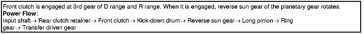 For each shift condition, certain holding units in the transaxle are used. Knowing which holding element is used and how they are connected in the transaxle, we can trace the power flow through the transaxle for each shift condition. One set of pinions, the short pinions, meshes with the reverse sun gear.