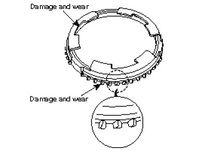 - When installing the synchronizer hub, make sure that the fingers of synchronizer ring are seated correctly in its groove on the synchronizer hub.