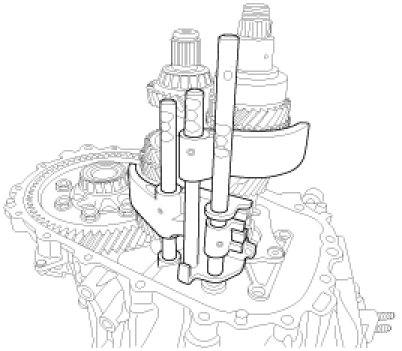 11. Install the shift rail and fork assembly by inserting the spring pins.