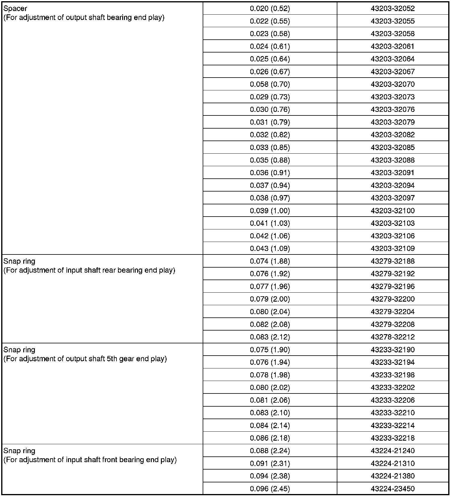 Snap Ring And Spacer For Adjustment