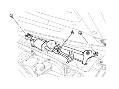 3. Remove the windshield wiper motor and linkage assembly after removing 2 bolts. Disconnect the wiper motor connector (A) from the wiper motor & linkage assembly.