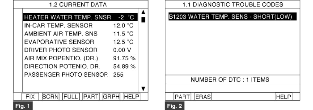 4. Are the DTC B1203 present and is parameter of "WATER TEMP. SENSOR" fixed ?