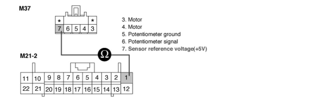 3. Measure resistance between terminal "7" of Intake actuator and terminal "B1" of A/C Control Unit.
