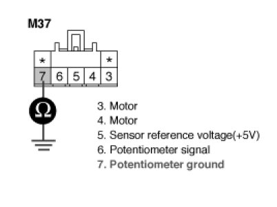 3. Measure resistance between terminal "7" of Intake actuator and chassis ground.