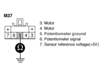 3. Measure resistance between terminal "5" of Intake actuator and chassis ground.