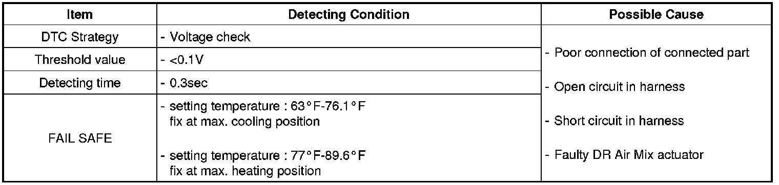 The ECM sets DTC B1245 if there is an open circuit or poor connection in the driver air mix actuator signal harness.