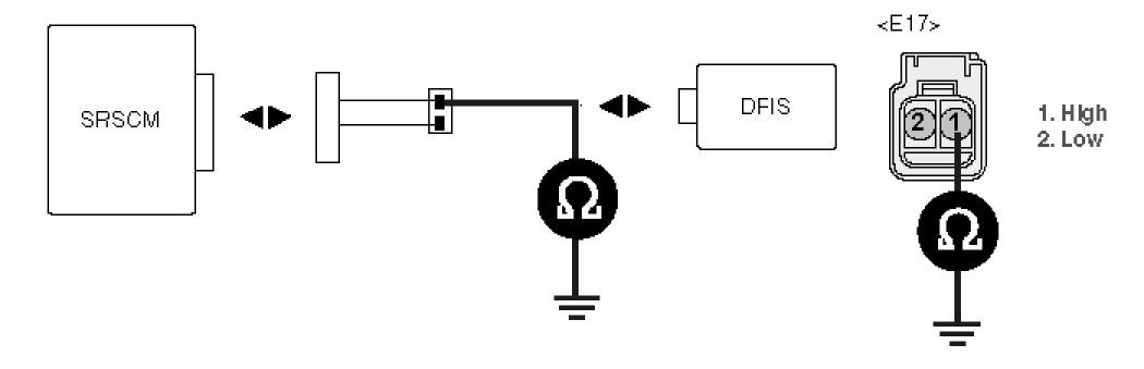 4. Measure resistance between terminal "1" or "2" of the DFIS harness connector and chassis ground.