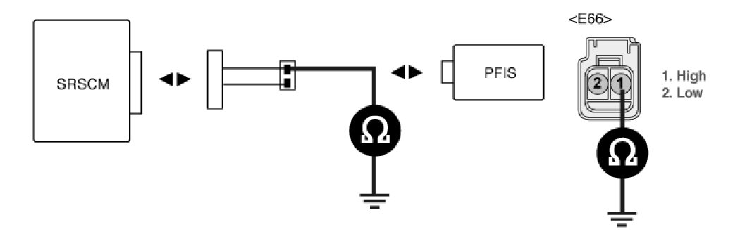 4. Measure resistance between terminal "1" or "2" of the PFIS harness connector and chassis ground.