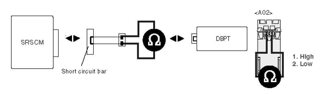 3. Disconnect DBPT connector and SRSCM main harness connector.