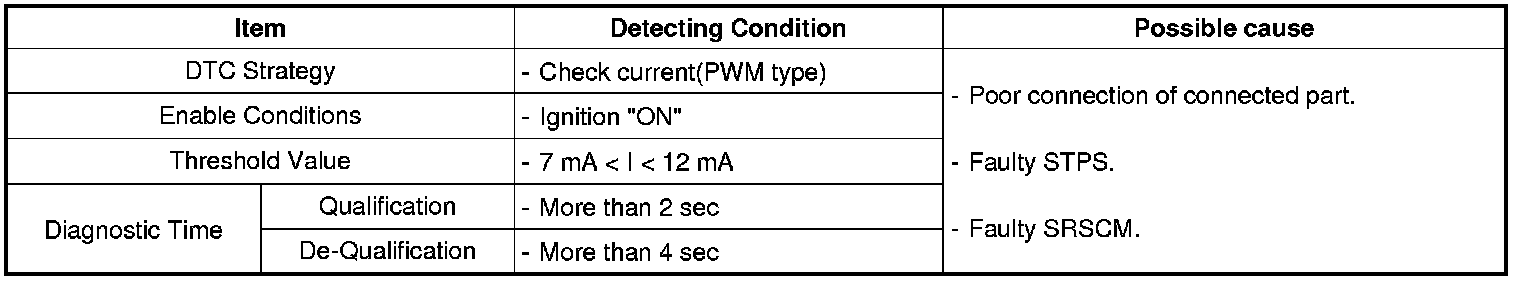 The SRSCM sets DTC B1371 if there is any fault in STPS circuit.