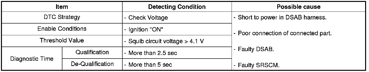 The SRSCM sets DTC B1381 if there is a short to power in DSAB harness.