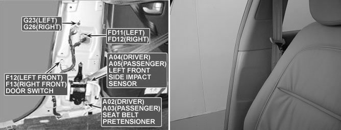 Side Impact Sensor (SIS) is located in both side of center pillar detects broad collision. When SIS delivers collision signal to SRSCM, SRSCM checks if safing sensor located in SRSCM detects collusion. and if both SIS and safing sensor detects collision simultaneously, SRSCM operates side air bag.