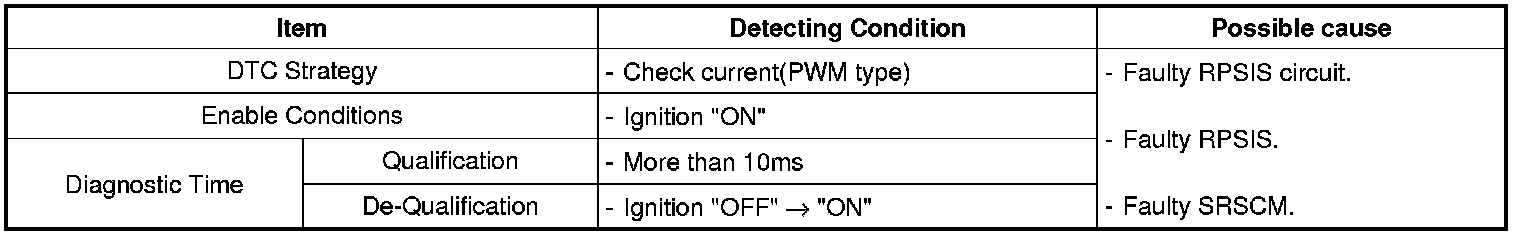 The SRSCM sets DTC B1419 if there is any fault in RPSIS circuit.