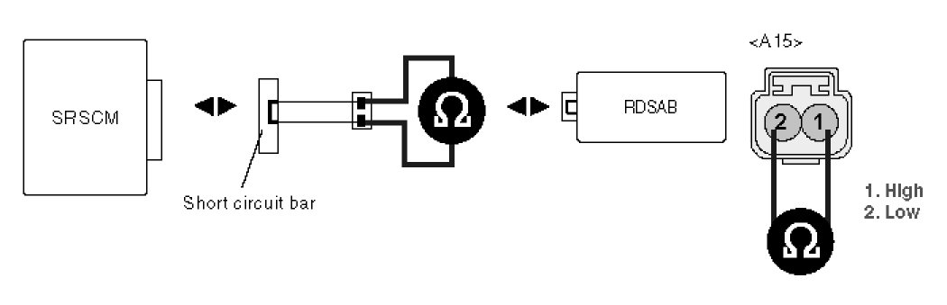 4. Measure resistance between terminal "2" and "1" of the RDSAB harness connector.