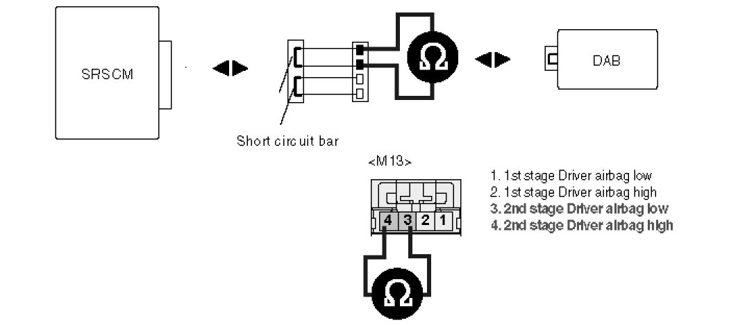 4. Measure resistance between terminal "3" and "4" of the DAB harness connector.