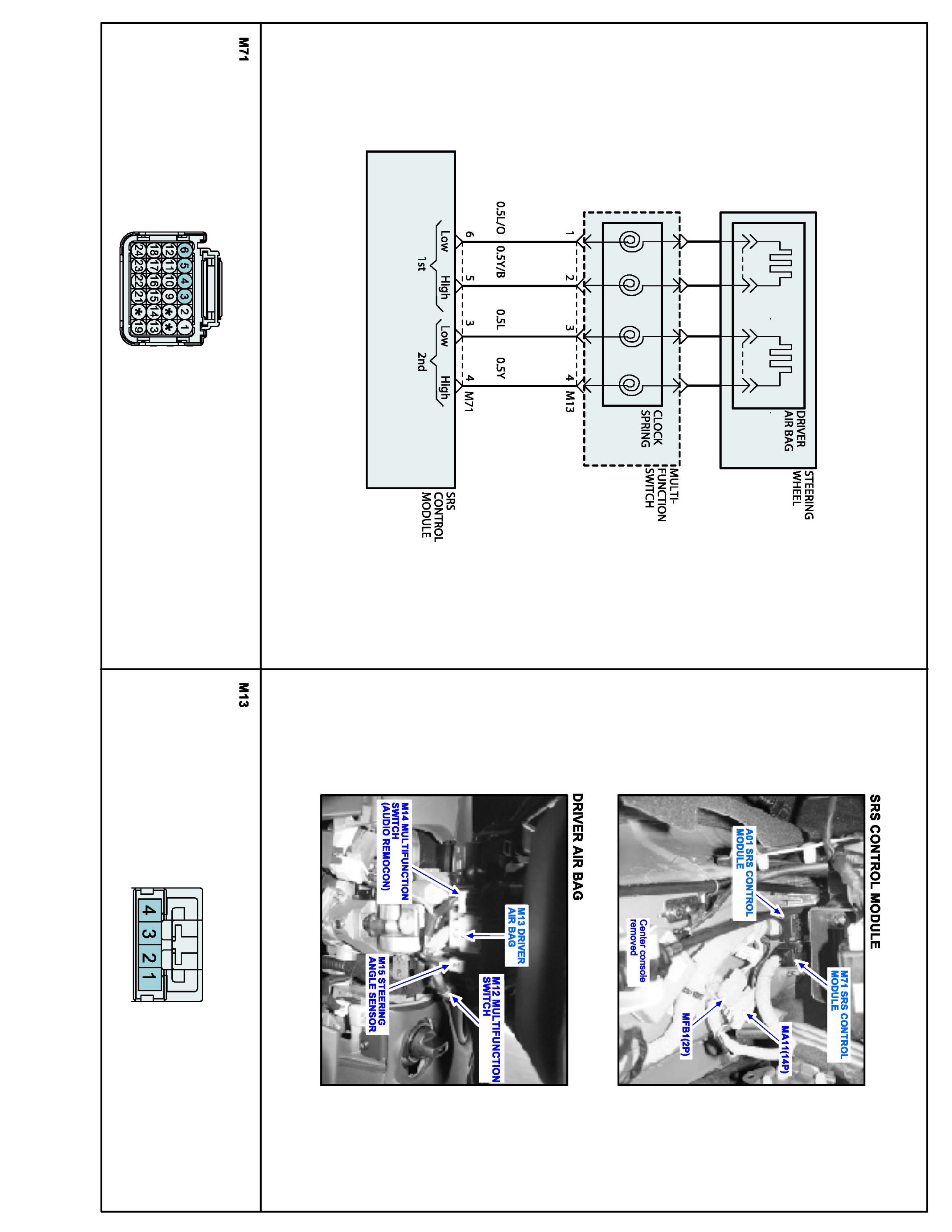 Driver Air bag module (hereinafter referred to DAB) located at center of steering wheel protects driver by reducing impact of collision. DAB is consist of air bag, pat cover and inflator. There are power, circuit for ignition, gas generator and diffuser screen in inflator. Air bag reduces impact of collision by filled up gas. In collision, pat cover splits and through this crack, air bag emerges and deploys. Inflator generates gas that expands air bag. Clock spring is located between steering wheel and column. It connects SRSCM to DAB.