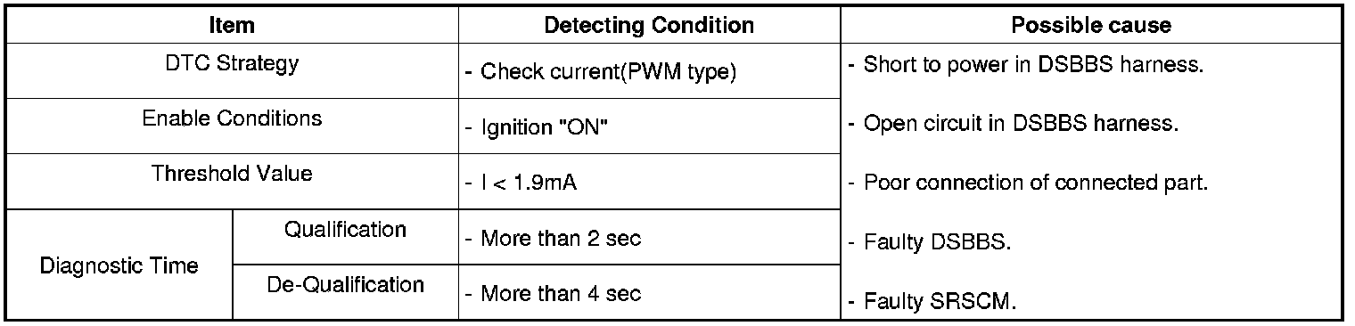 The SRSCM sets DTC B1511 if there is a open circuit or short to power in DSBBS harness.