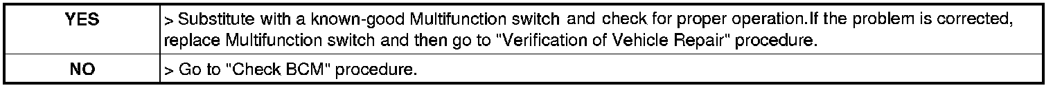 3. Substitute with a known-good Multifunction switch and Check if the DTC is erased.