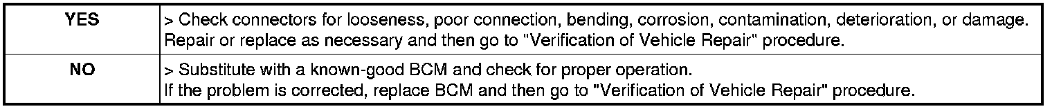 Measure voltage value between terminal "A11" of BCM and chassis ground.