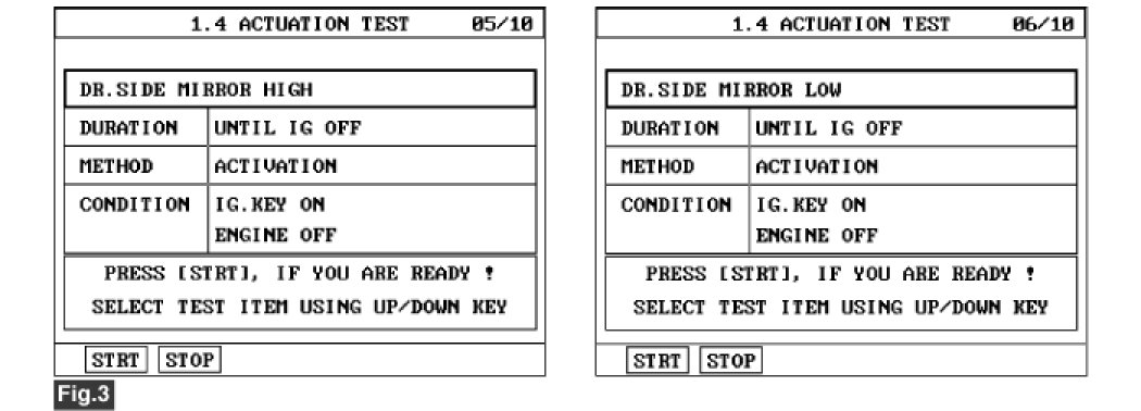 fig. 3) Actuation Test of left outside mirror.