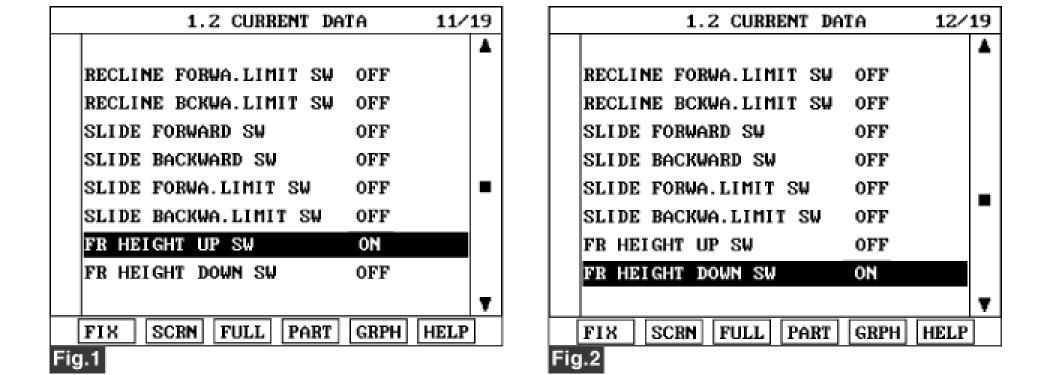 fig. 1), fig. 2) Current Data of front height switch.