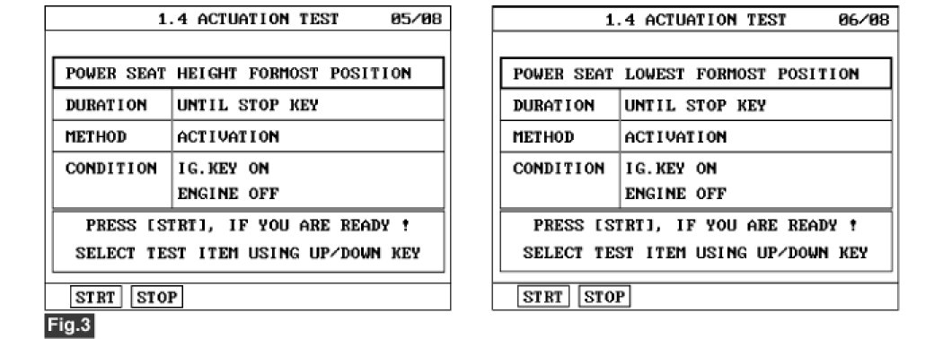 3. Select "ACTUATION TEST" mode on scantool and press [F1] to start