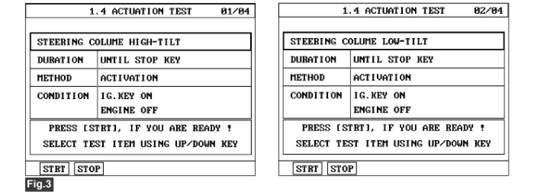 3. Select "ACTUATION TEST" mode on scantool and press [F1] to start