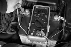 3. Measure voltage between terminal (+) and (-) of battery maintaining ENG. RPM at 2,500 RPM (idle) over 2 minutes.